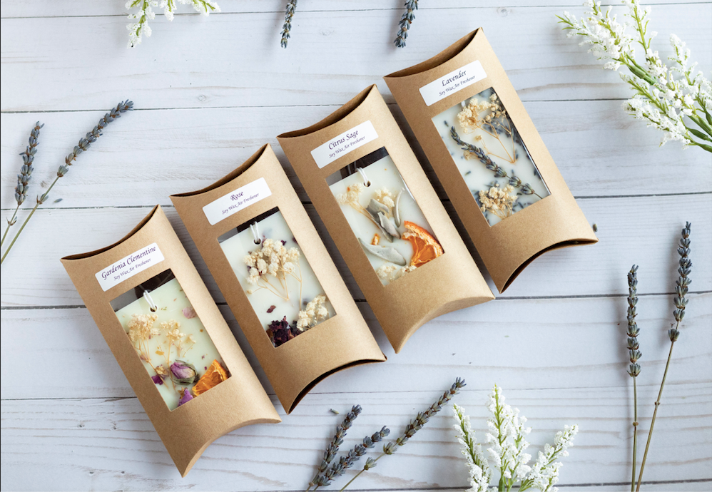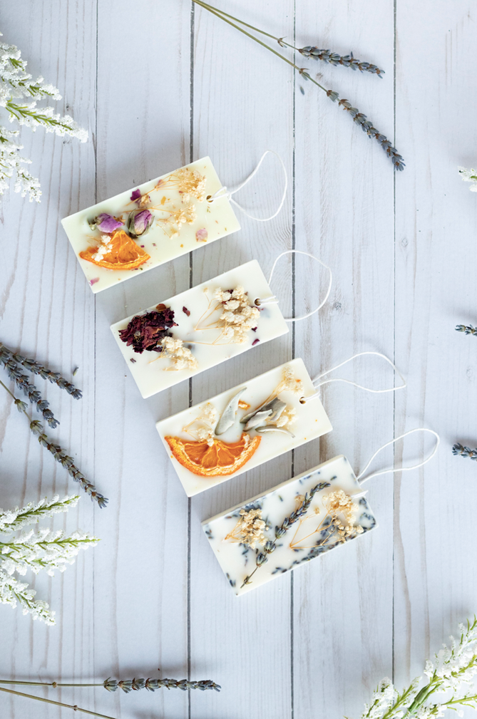 DISCLAIMER: Do not hang these in your car, as they are made of soy wax, and can melt when exposed to high heat.
