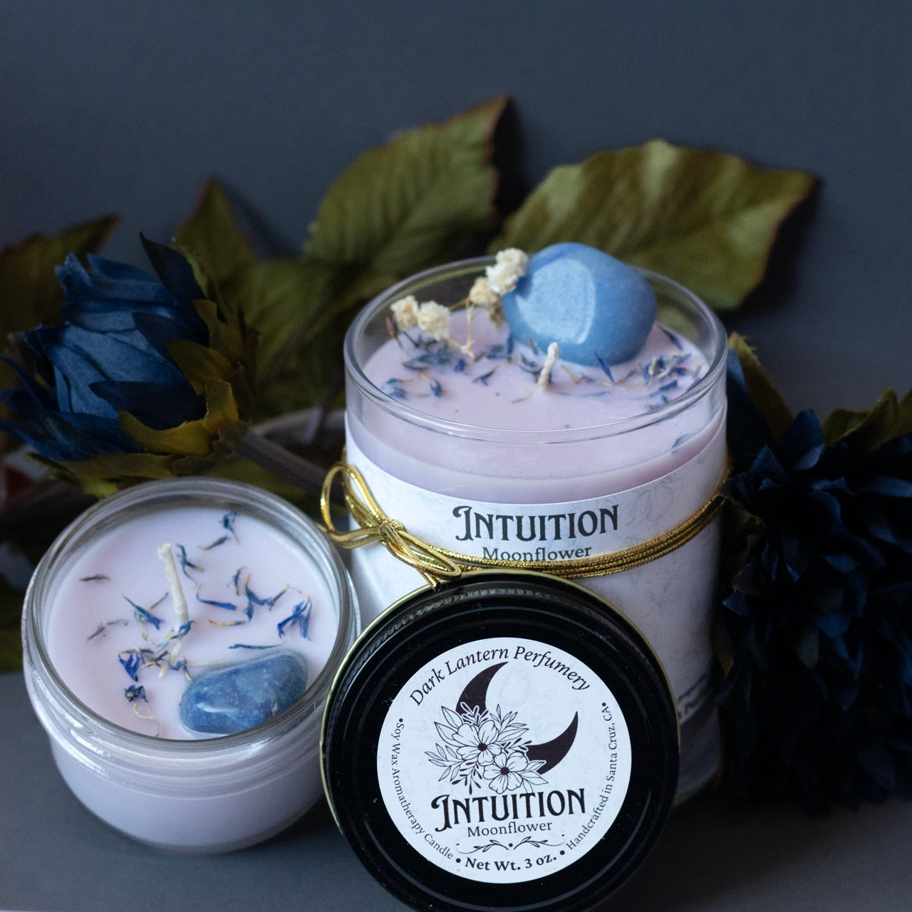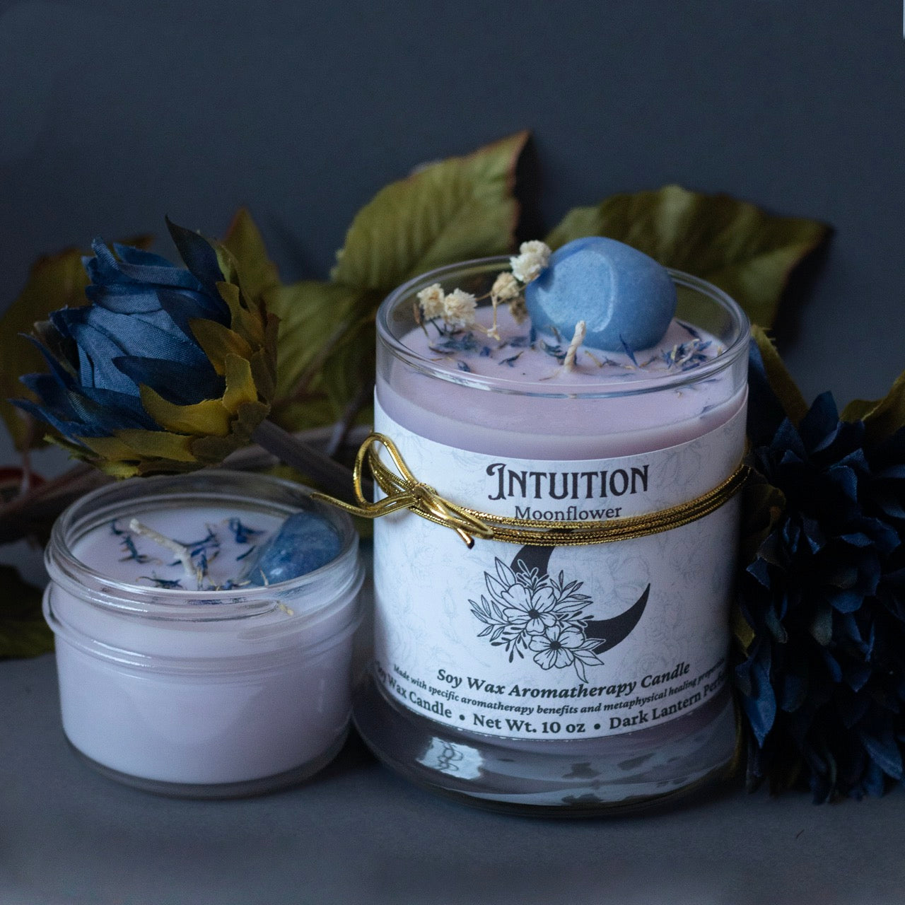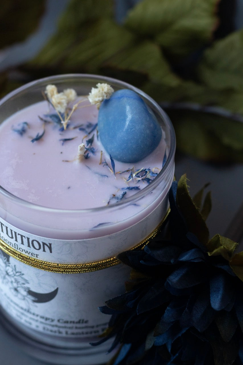 This candle is infused with specific herbs and oils to open the upper chakras, and help strengthen intuition. Infused with Frankincense and Myrrh essential oil, which are commonly used in magick to help open the third eye and are very powerful when combined. Frankincense is known to be spiritually enlightening. It aids in meditation, visualization, centering and connecting to spirit. Myrrh is known to aid in big spiritual shifts by opening doorways to inner contemplation. More info about the healing properties and aromatherapy benefits come with the candle.