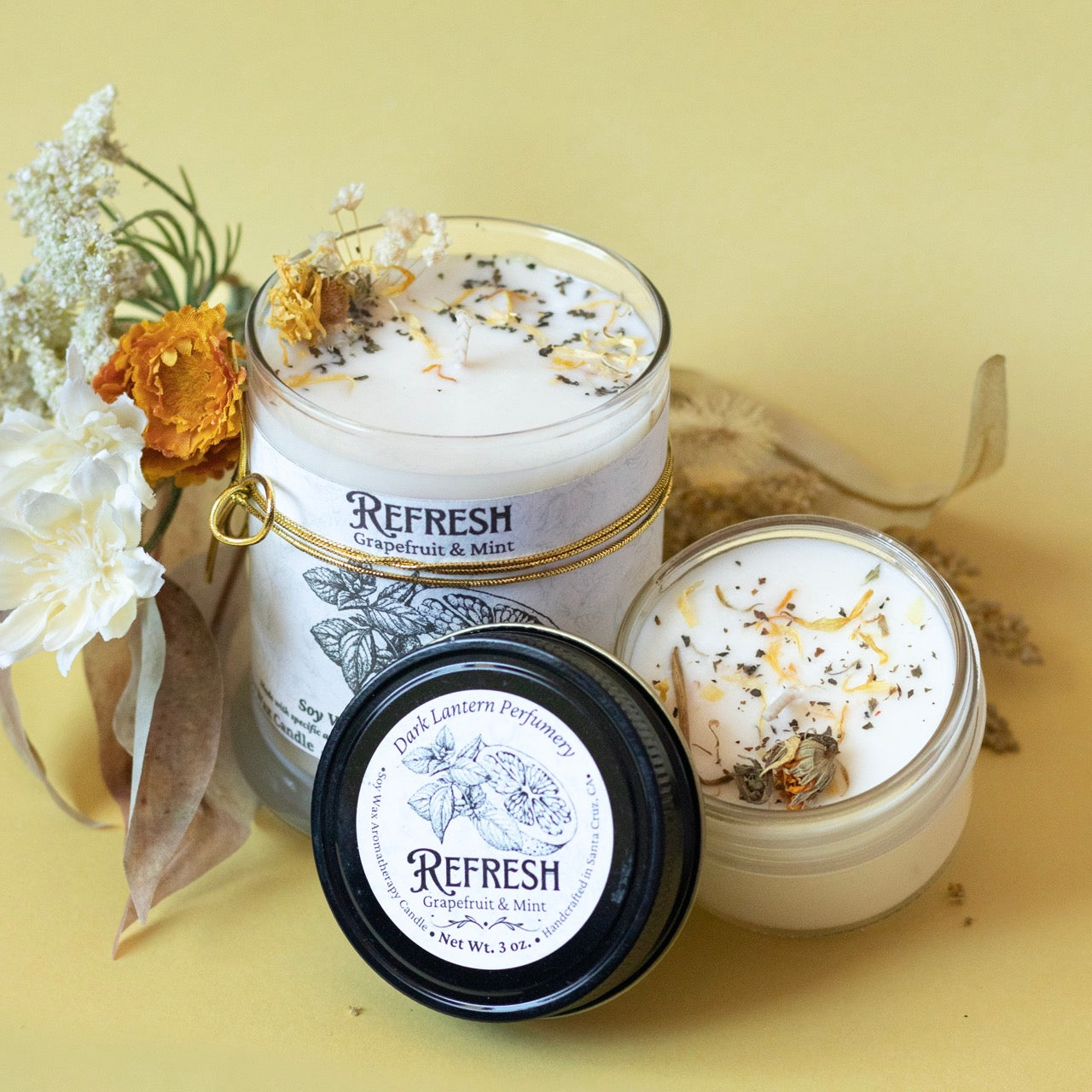 This candle is infused with Grapefruit and Spearmint essntial oil and smells just like fresh, green, citrusy mojito. This blend of essential oils is great for boosting mood and refreshing the senses. More info about the healing properties and aromatherapy benefits come with the candle.