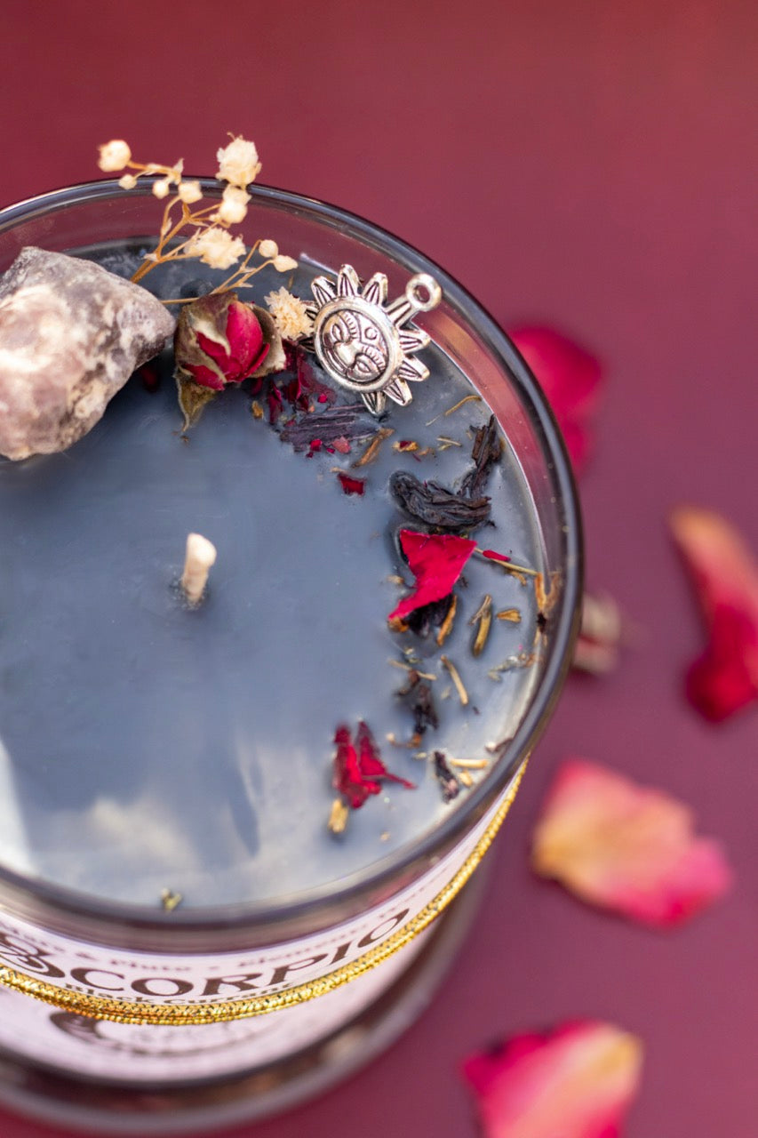 The glyph for Scorpio depicts a scorpion with its tail pointing up, symbolizing the need for action and the striving for something higher. Scorpios are cunning, incisive, and natural go-getters, due to their ruling planet being Mars, the planet of action. They are also known to be one of the most passionate signs of the zodiac, which is why this candle is infused with Cedarwood essential oil to balance the wonderfully intense energy of a Scorpio. Cedarwood essential oil is spiritually grounding and strengthening, and it is known in aromatherapy for reducing symptoms of stress and anxiety. Scorpios are passionate and natural go-getters, so these aromatherapy benefits will help them recenter after the hustle and bustle of daily life. More info about the healing properties and aromatherapy benefits come with the candle.