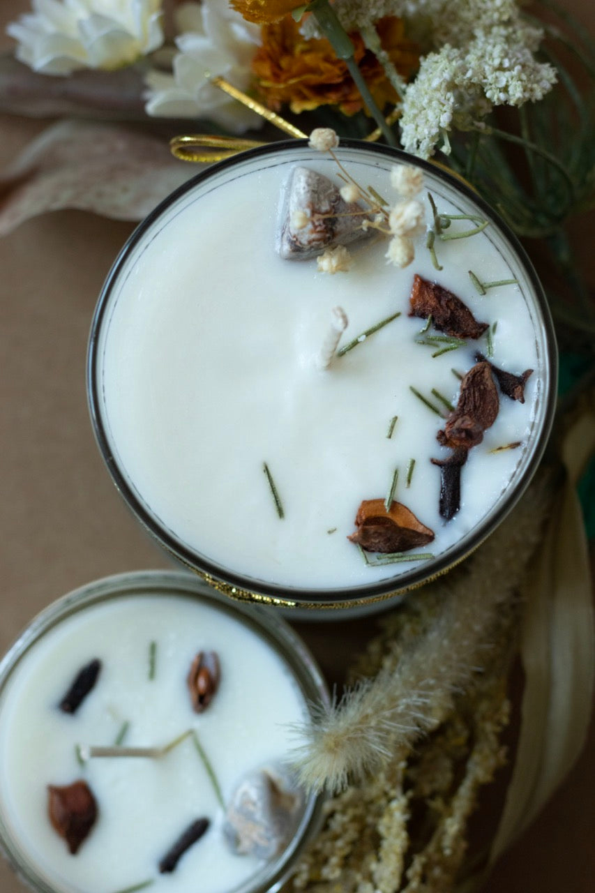 PLEASE NOTE: All stones and crystals are selected intuitively for each candle, the size, shape, and color may vary. Please also note that as all candles are handmade in small batches, and that colors may vary slightly.