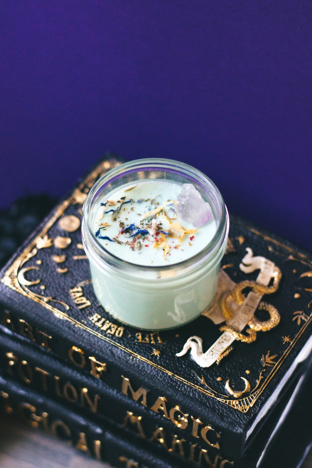 PLEASE NOTE: All stones and crystals are selected intuitively for each candle, the size, shape, and color may vary. Please also note that as all candles are handmade in small batches, and that colors may vary slightly.
